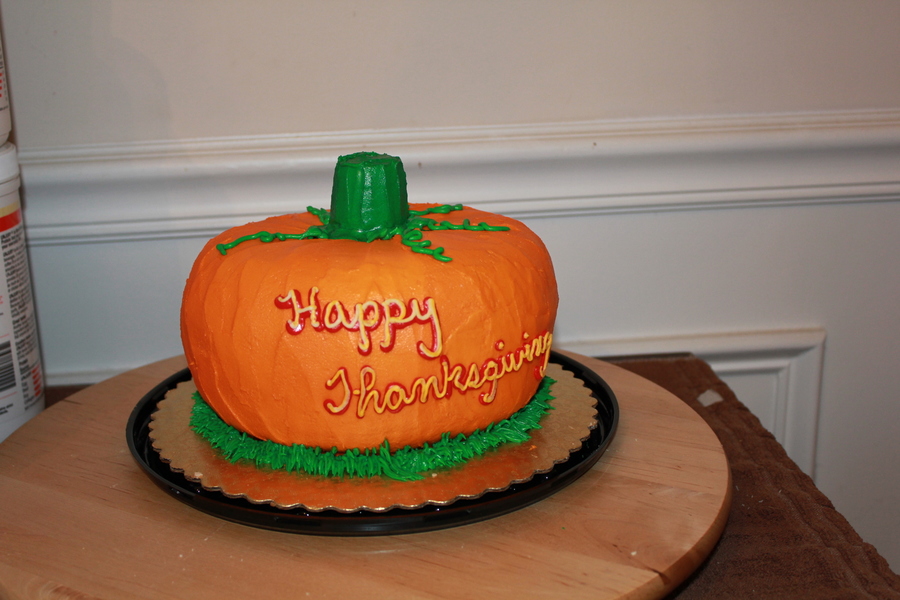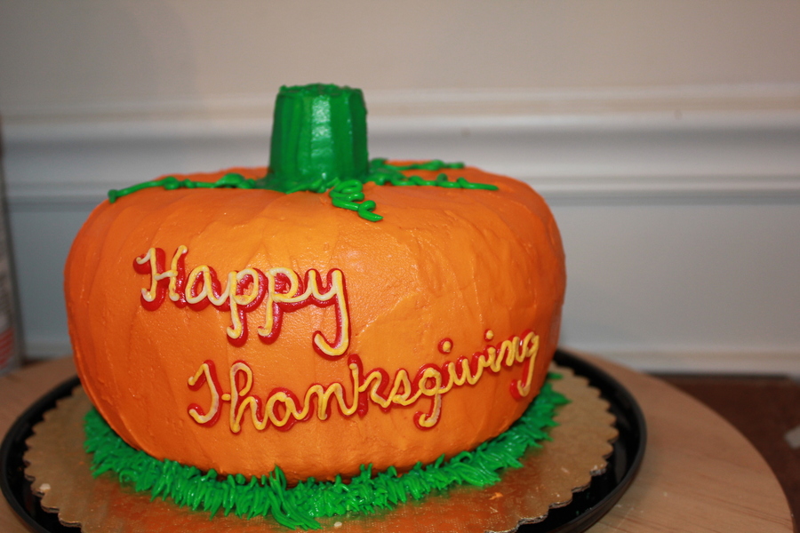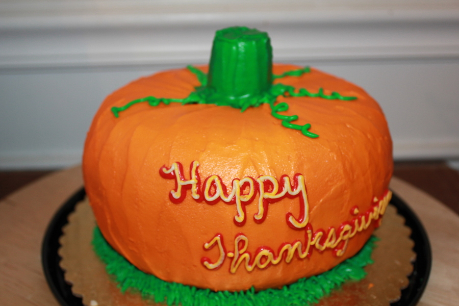 Pumpkin shaped cake cover in orange buttercream!! Yum!