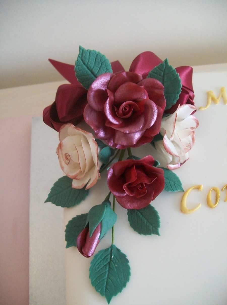 Sprays done for a ruby wedding cake the red ones are made with menina coloured paste mixed with my own homemade paste, coloured with lustre dust mixed with alcohol.