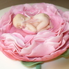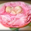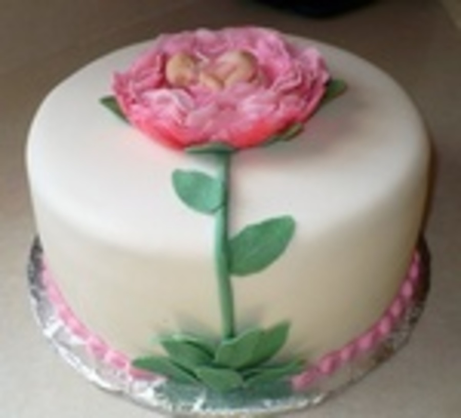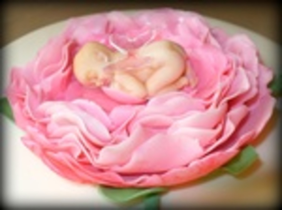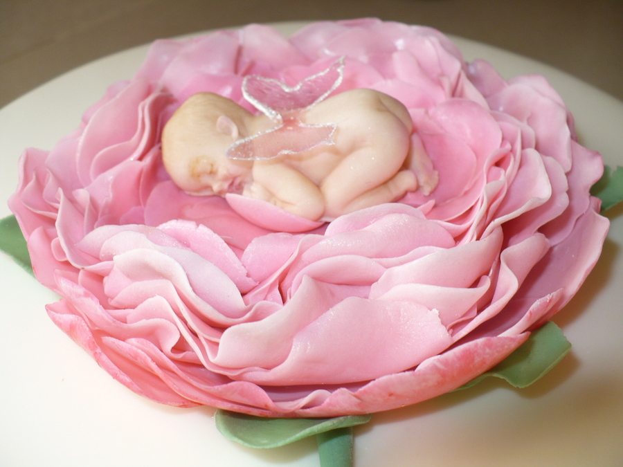 covered in fondant. gumpaste flower and baby gelatin wings.
