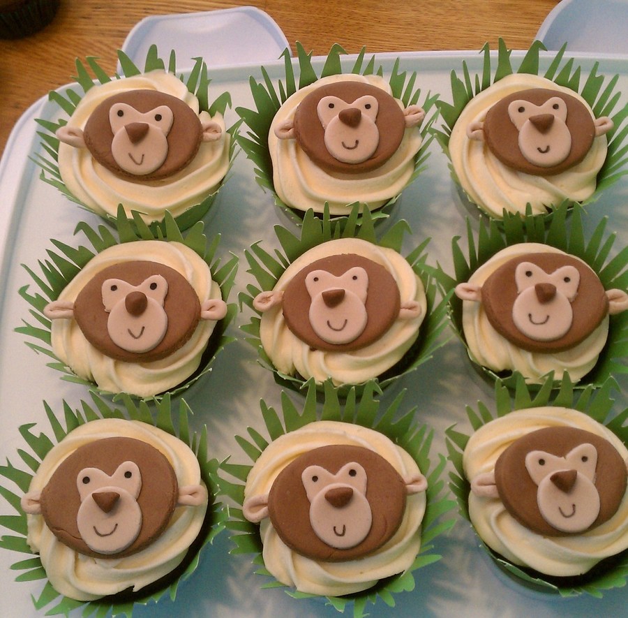 Made these for a monkey themed baby shower. The toppers are made from fondant and I made the grass wrappers. I got the inspiration for the toppers from thefrostedcakencookie on the web. Thanks for looking!