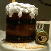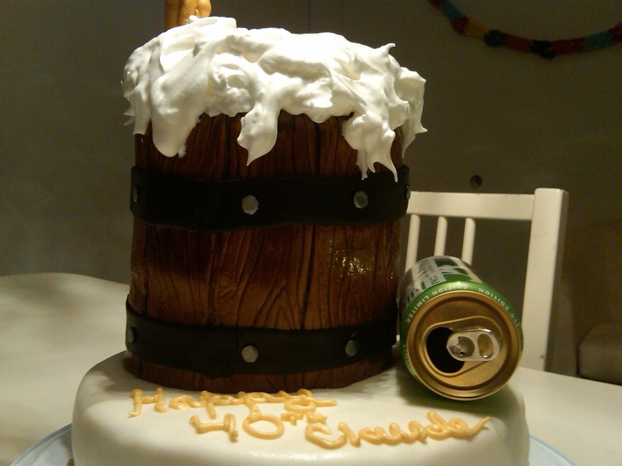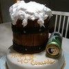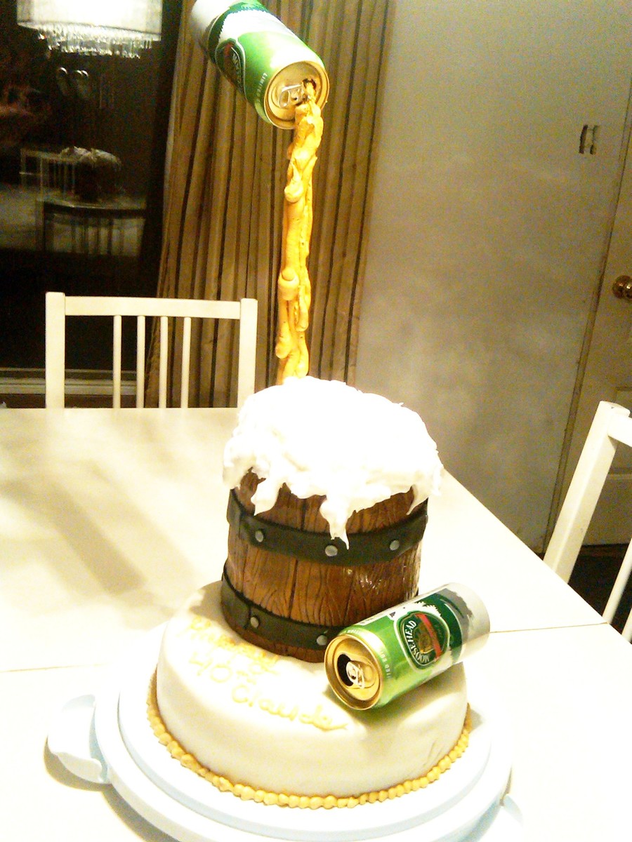 Made this for my husband's 40th birthday. Loved the cakes on this site that inspired this idea, but I just wasn't confident enough in my structure to support a bottle. Wish I would have. Next time I'd like to try it with a sugar glass beer bottle!