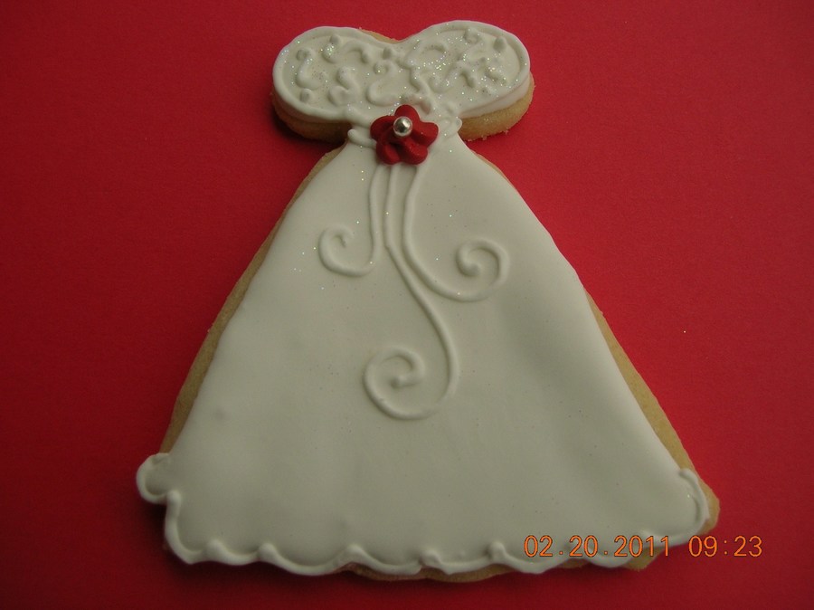 Wedding dress cookies for a bridal shower.