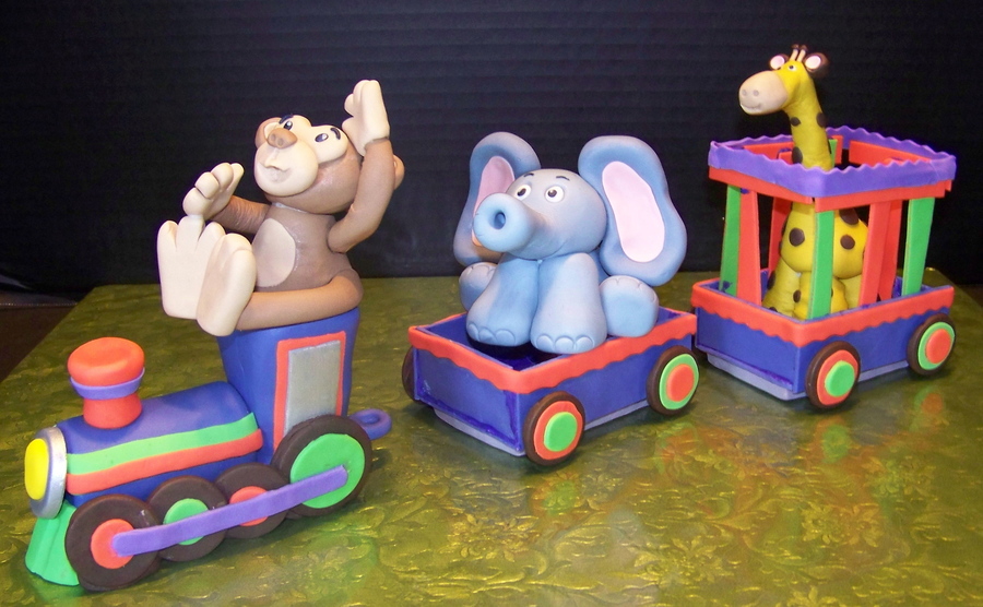 Made this for our nephew in France. Unfortunately, the little car and the giraffe's car didn't make it in one piece. Everything is made of gumpaste and/or fondant.