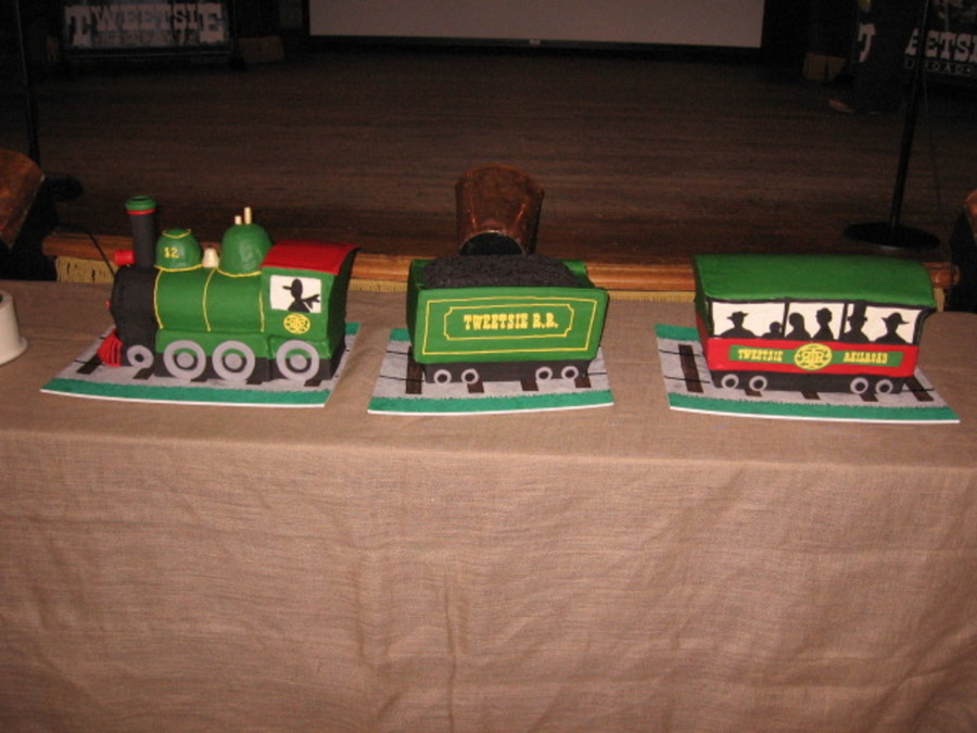 This cake was ordered by a local amusement park to celebrate their 50th Anniversary. I put a tiny vase in the smokestack so we could add dry ice and get the train to smoke.