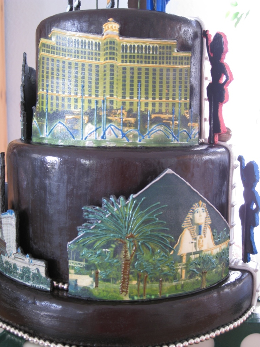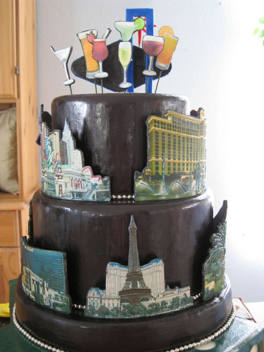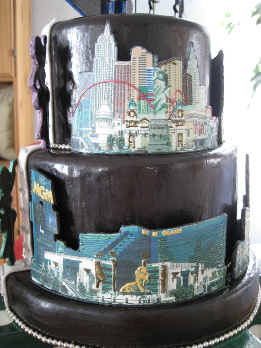 Square & round cake dummies covered in fondant. Fondant covered in edible images (varying accents of luster dust, royal icing, and gel with luster dust). Silver dragees. Won 1st place in the birthday category at the county fair.