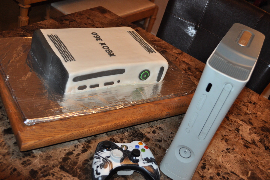 This was a birthday cake for my son-in-laws birthday, It's sitting right by the real one that I modeled it after and a controller, which I didn't have time to make. It's vanilla pound cake, buttercream and covered in mmf. My son told me to make the color on the power button red after I already did it. I didn't understand the significance of the color until my daughter told me that the red means it's broken, had I known that I probably would have done it for the laugh.