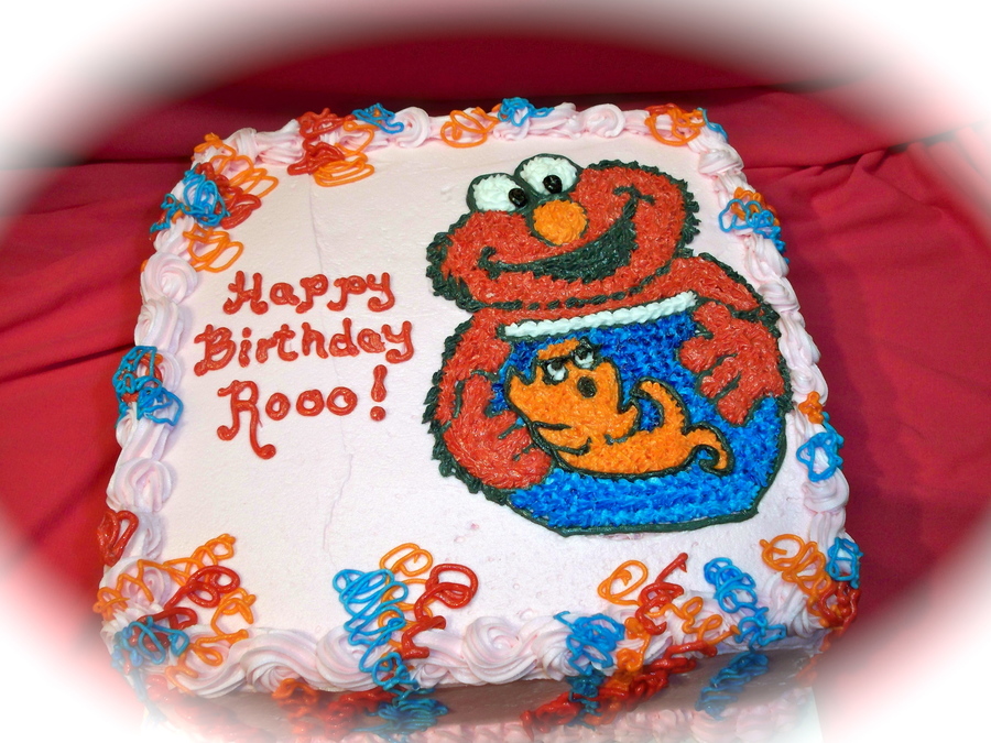 Buttercream iced with star tipped piping of Elmo & Fish Bowl.