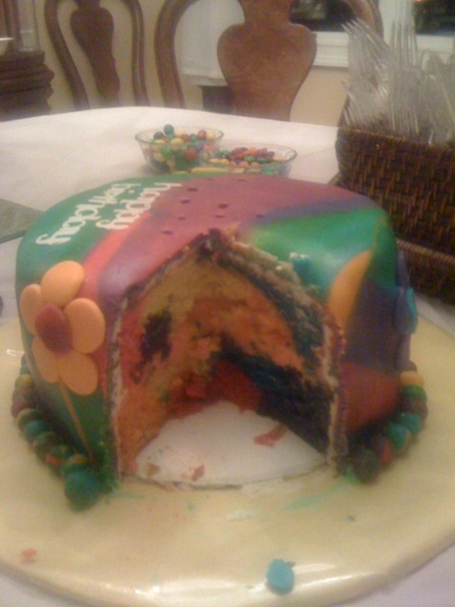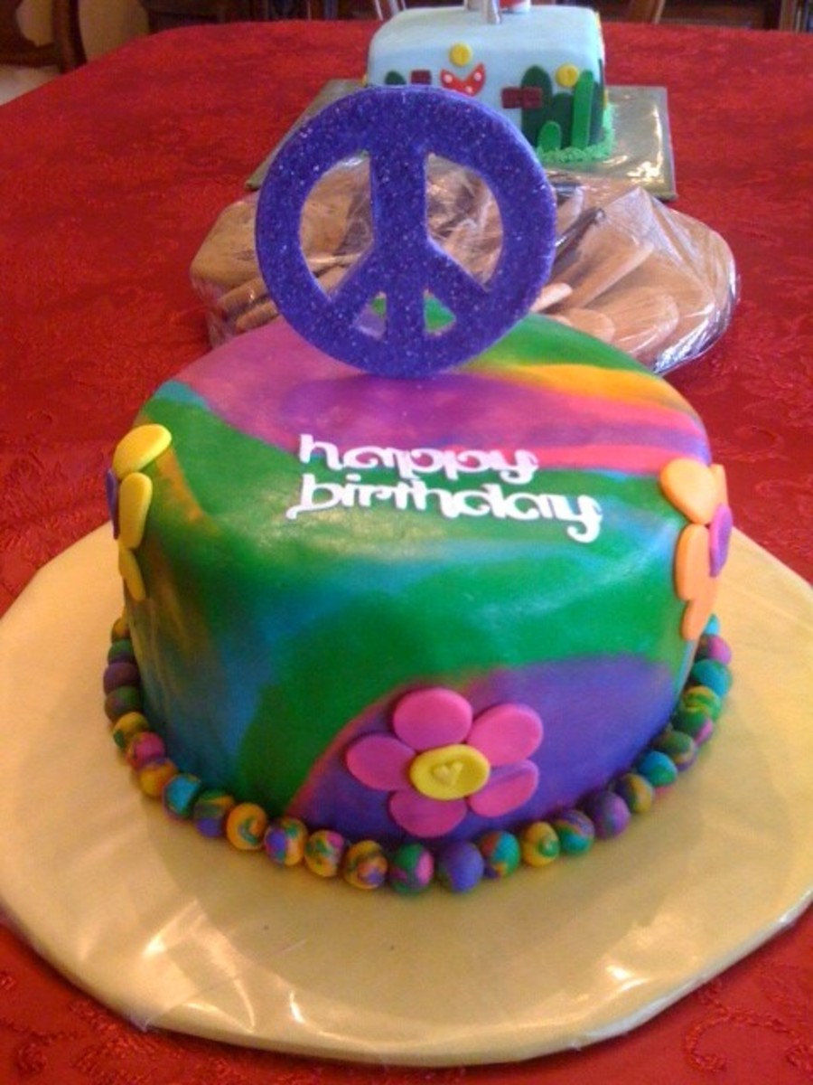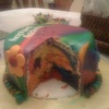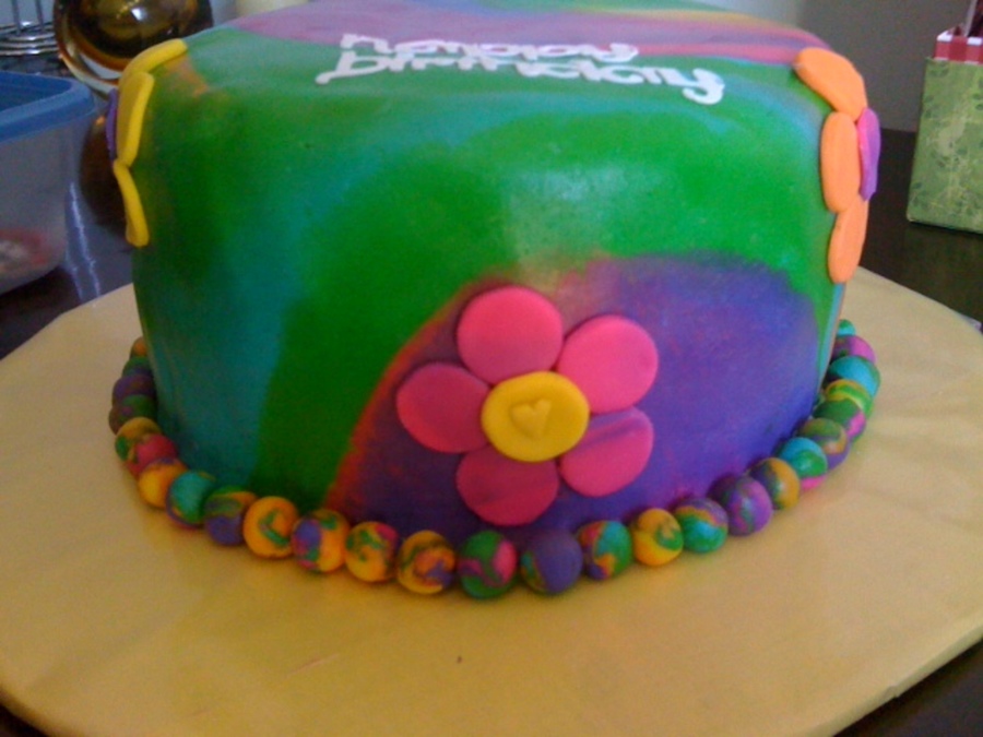 I made this for my niece. Marbled fondant and tie dye inside too!