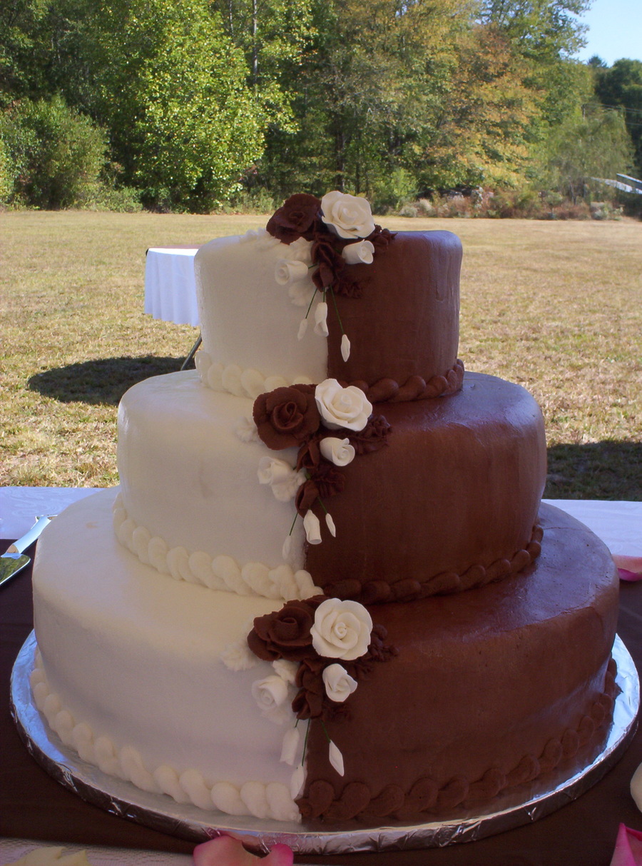 Brown N White wedding cake. Chocolate n Vanilla cream cake