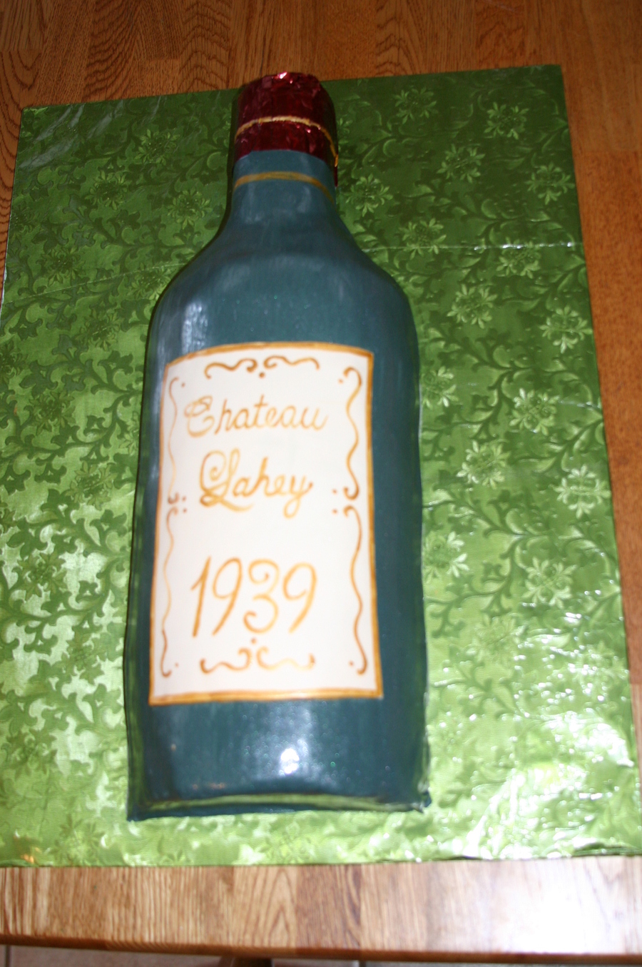 White cake with buttercreamm icing. Used the birthday boys' name in the name of the wine and it was "bottled" the year he was born.