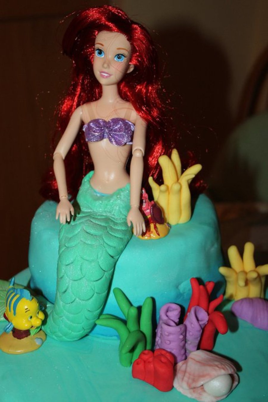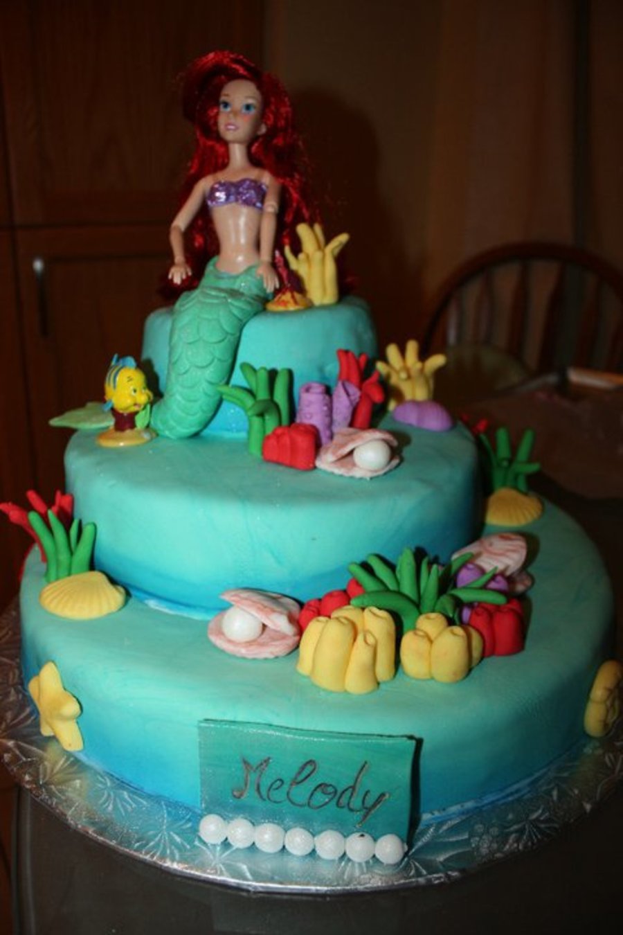 Ariel under the sea 3 tier cake , Belgian chocolate filled with chocolate mousse and french vanilla filled with strawberry mousse. covered in fondant.
