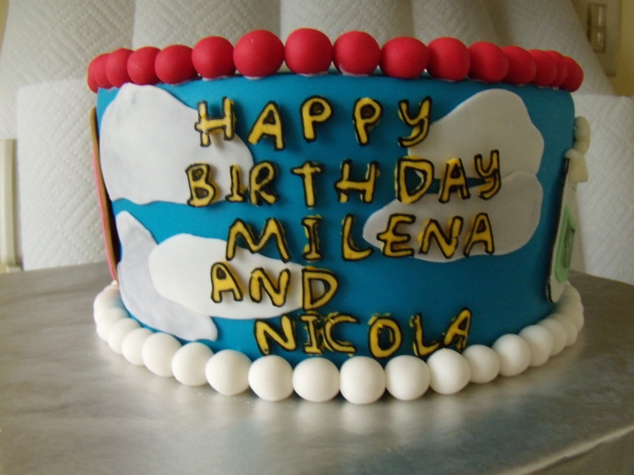 Strawberry cake w/dark chocolate buttercream icing. Covered in fondant w/fondant decorations. Also a first doing fbct!