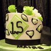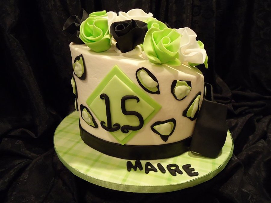 A super fun cake. Love the colors and style.. a shameless copy from Pink Cake Box.. Vanilla Butter Cake, Raspberry filling, Vanilla Buttercream. All fondant decorations.. TFL