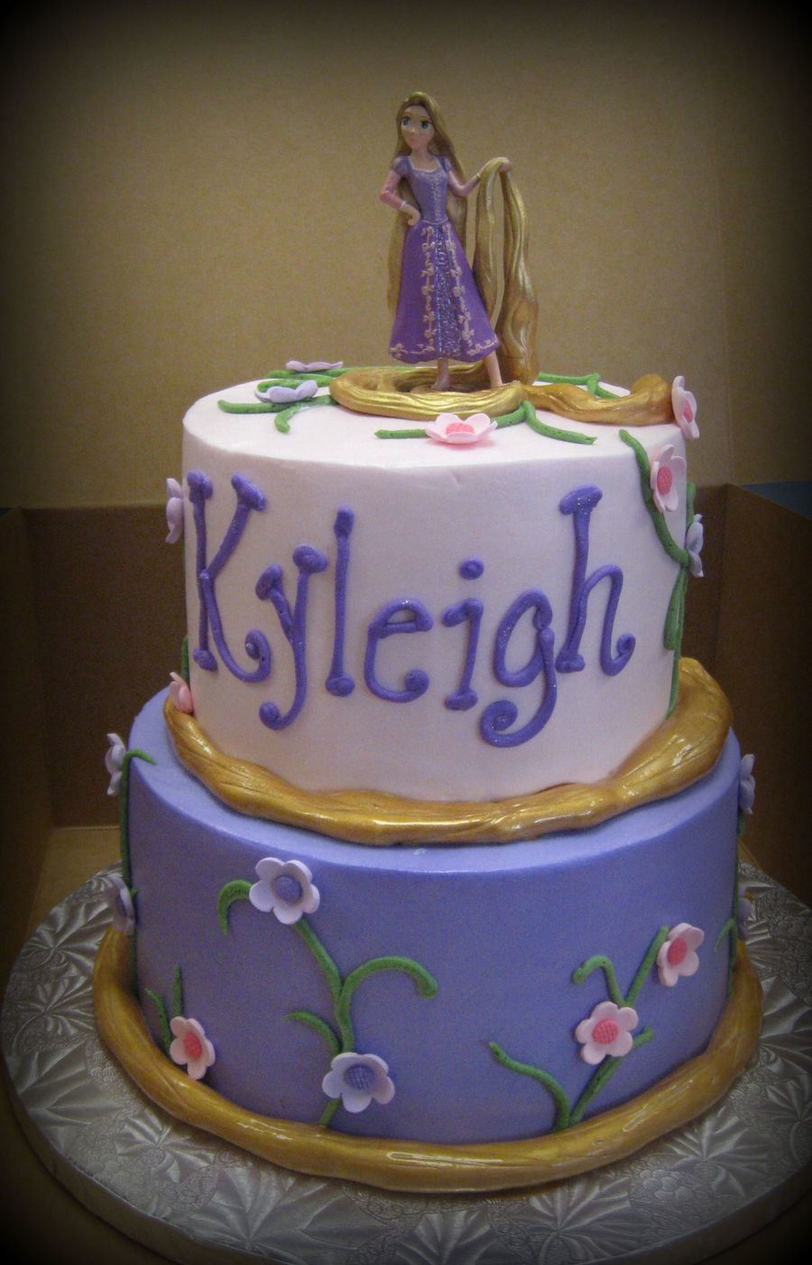 A customer brought in a picture of this cake for me to "copy". I see they found it here on CC. Thanks to "wondermomx4" for her idea! This is a 6/8 buttercream cake. Hair is just rolled out fondant wrapped around each layer, painted with luster dust.