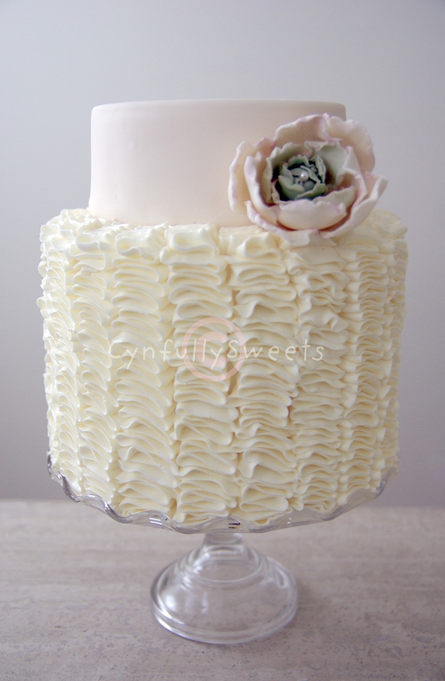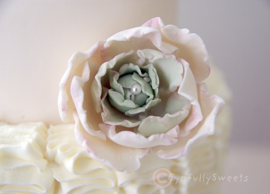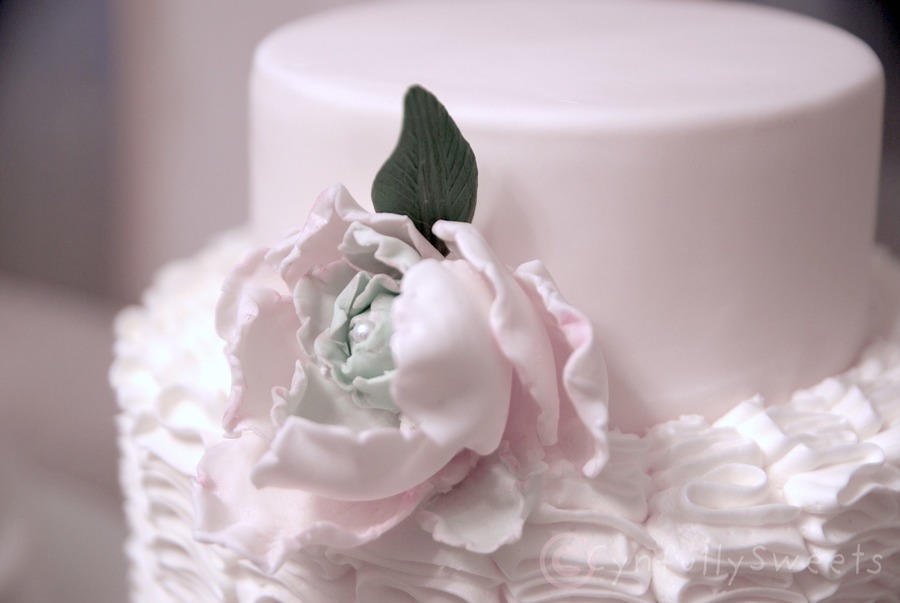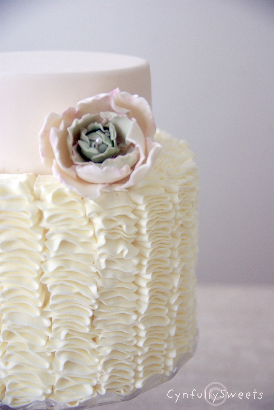 This a combination of buttercream & fondant work. The ruffles on the bottom tier (8x6) were piped using tip no.104