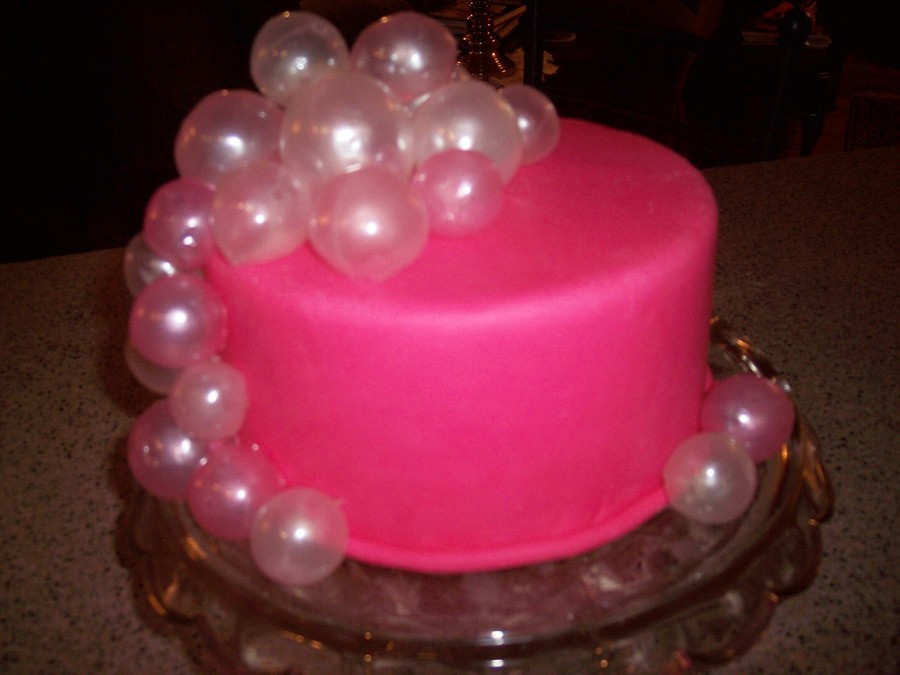 My first try with the gelatin bubbles. I love making them. Dummy cake covered in fondant with gelatin bubbles.