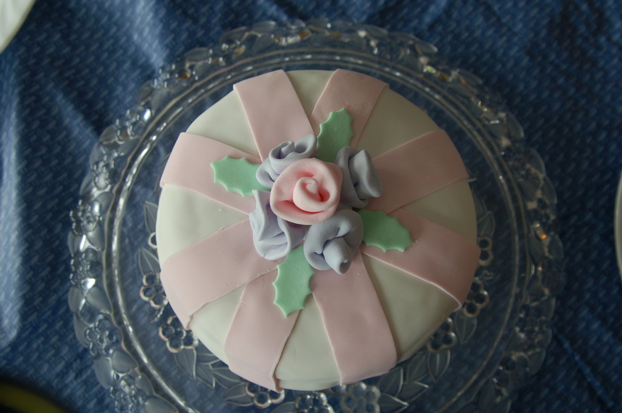 Here is my first cake i did at home after my first fondant class kinda rough around the edges but not completely horrible for a first timer :)