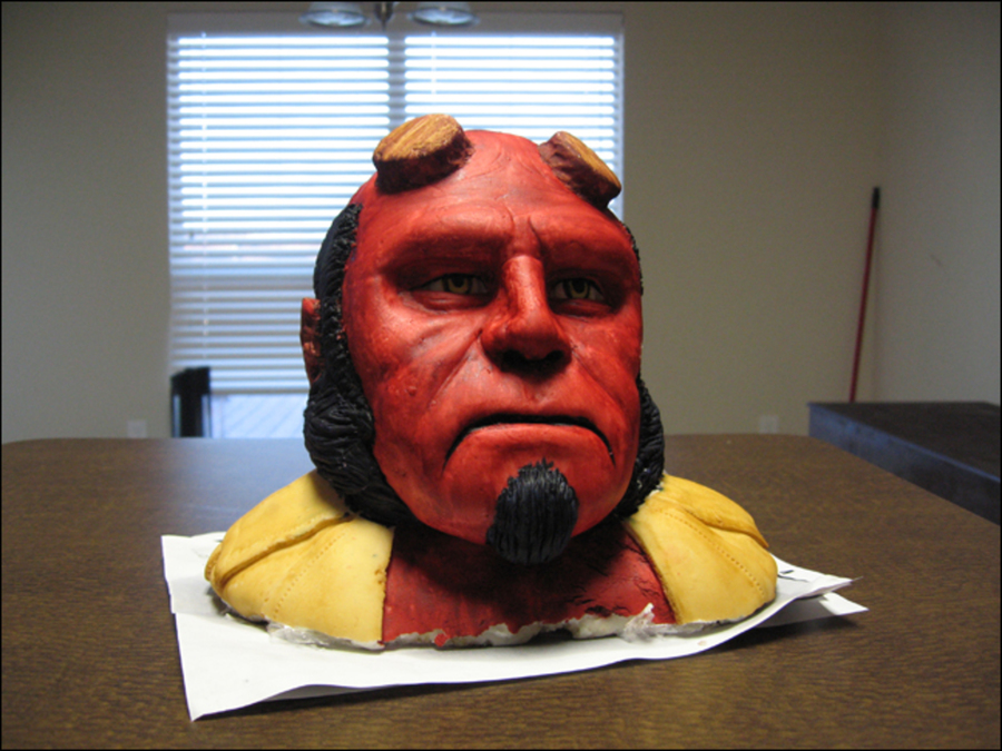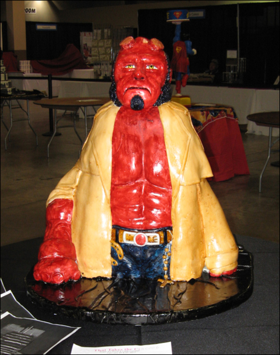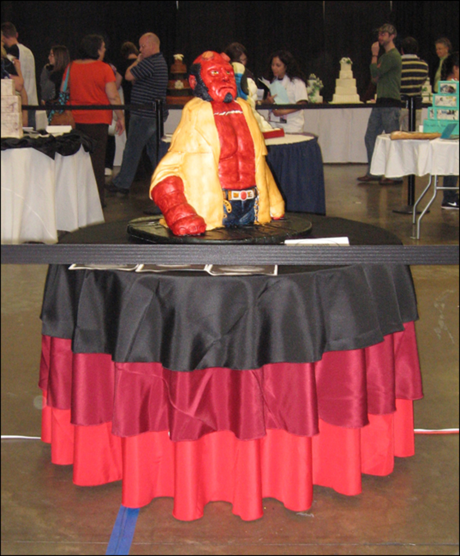 This is the Hellboy cake I made for the Showcake category for That Takes The Cake 2011 in Austin, TX. I'm a beginner with no work cake experience and have only been making cakes since August of 2010 and this was my first show competition entry so I was super happy to place in the top 10! I placed 8th. :) He started to come apart pretty early on, poor Hellboy! I learned so much at the show and it was so fun!