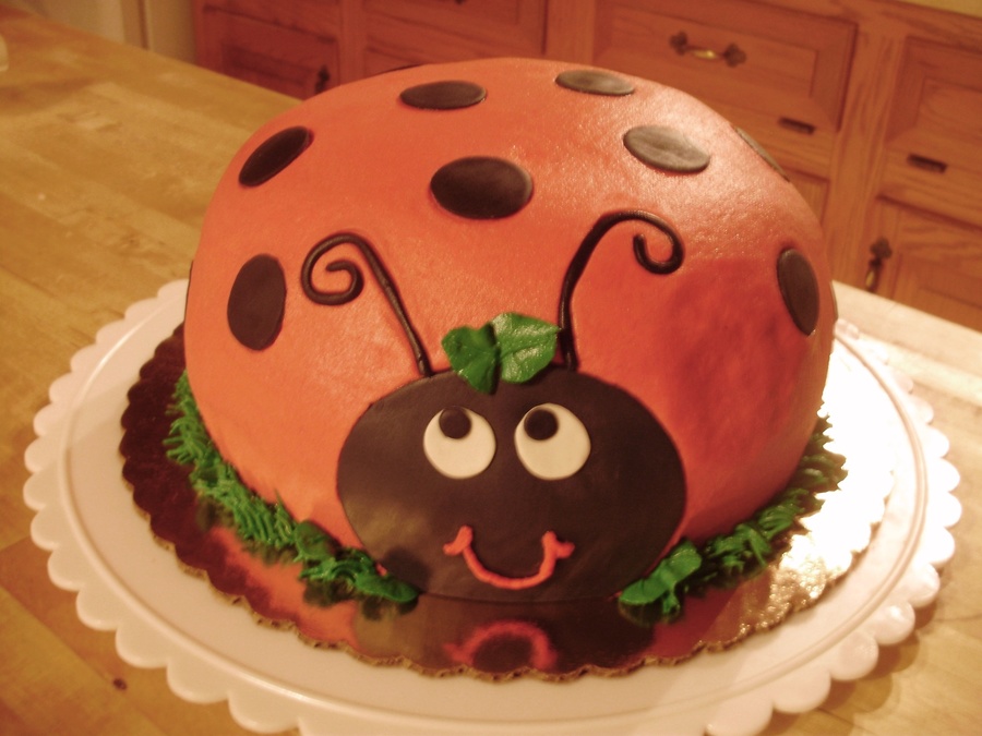 made this cake w/ an 8" round and a bowl. the red is buttercream and black accents are fondant