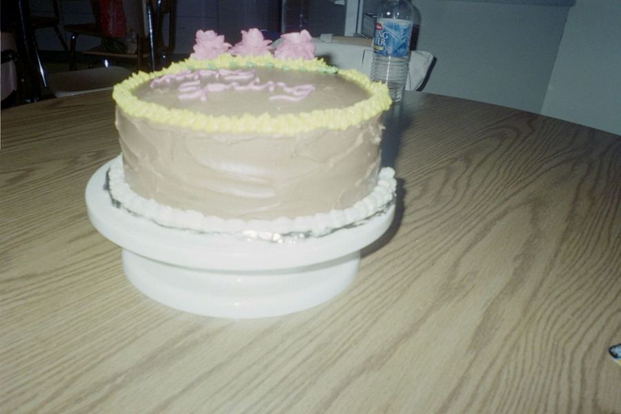 The description is the same as the previous cake. Yellow with chocolate icing between layer and top and sizes.