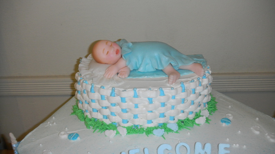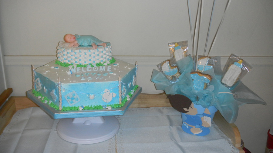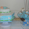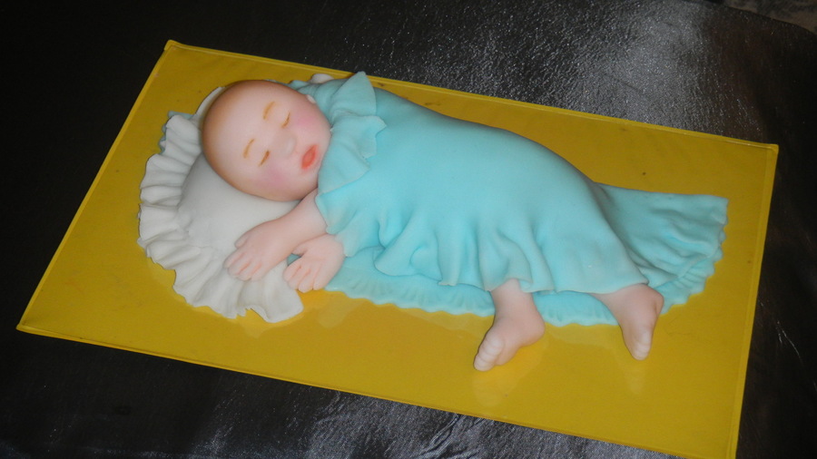 I made this for a friend of my aunts baby shower .. the baby was made with fondant [[my first time & no molds yay!!]]