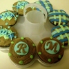Boy baby shower cupcakes. Half are Chocolate Ganache Cupcakes, and Half are Vanilla-Creme Bouquet Cupcakes