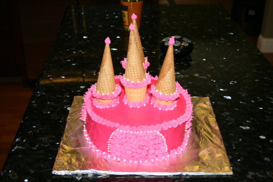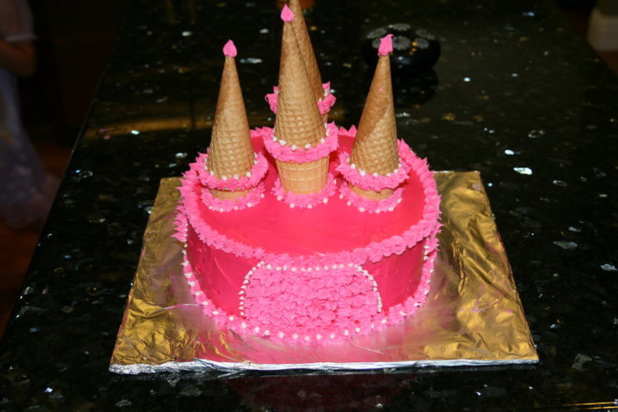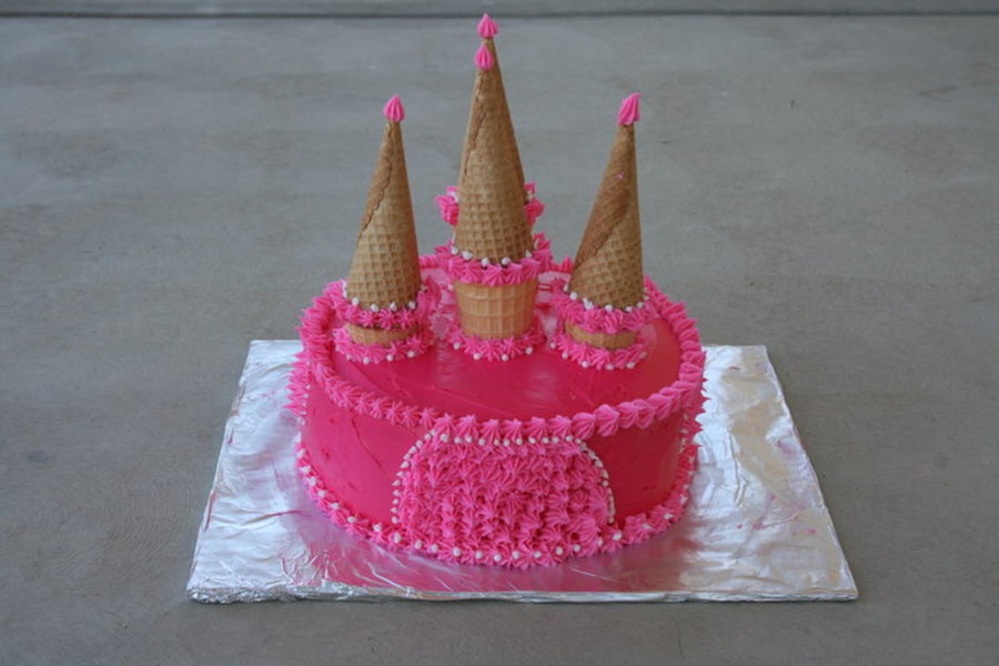 Castle Cake made with strawberry and strawberry filling.