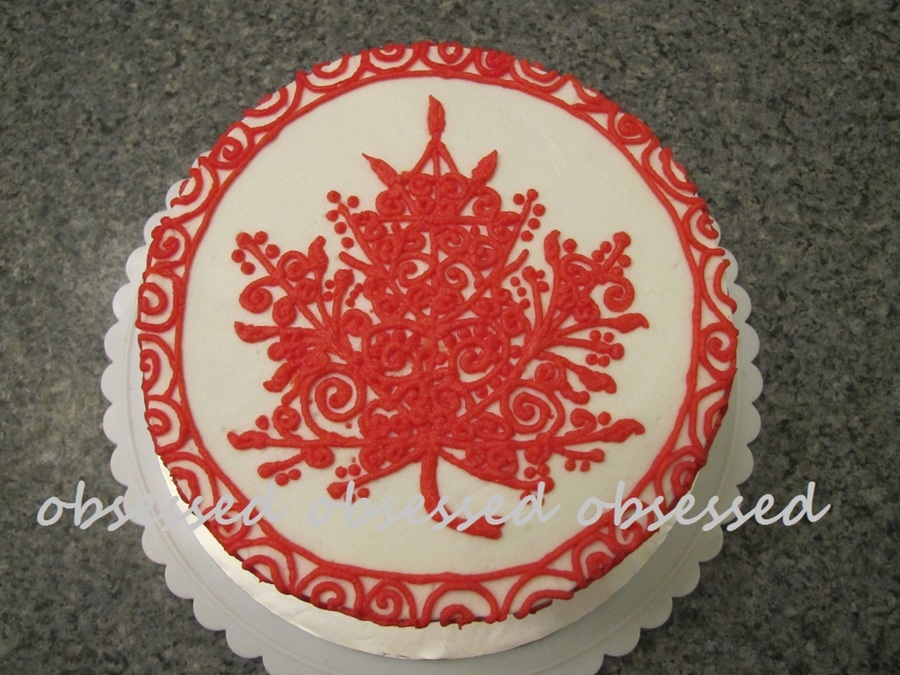 I hadn't originally planned to freehand the maple leaf but ended up having to do so...it came out alright but if Plan A had worked, I feel it would have looked better...lol. This was a cake that I made for some of our newest citizens.