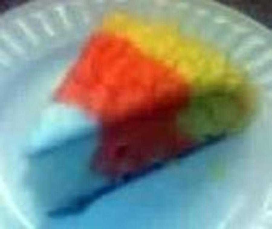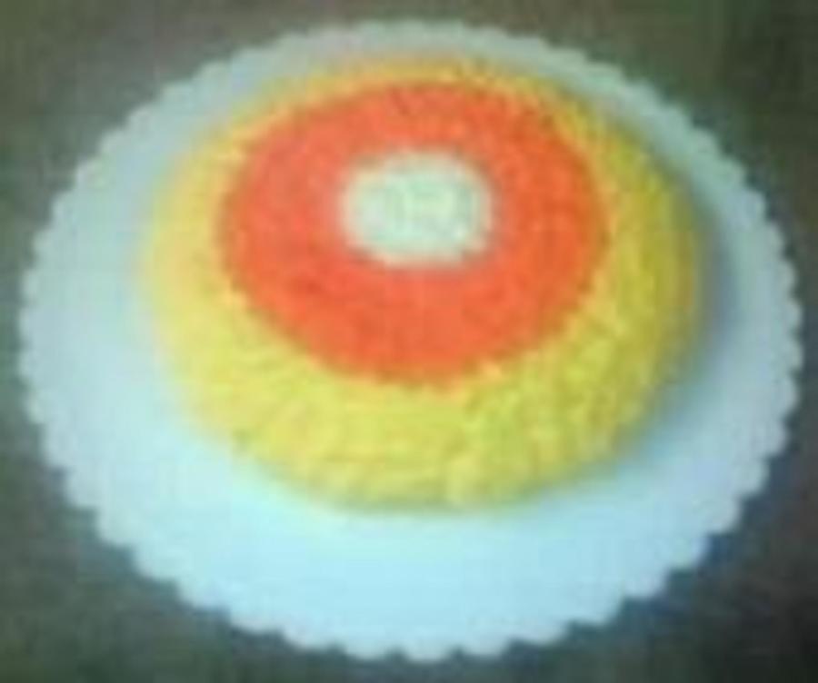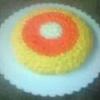 When this round cake is cut, it resembles a candy corn. Done with checkerboard cake pan set.