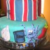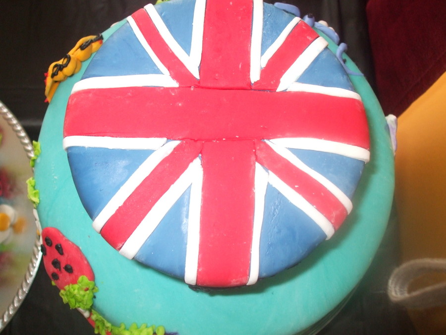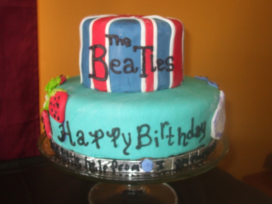 After a cake disaster with my bottom tier falling I made this cake out of the 2 remaining tiers. I picked My son's favorite Beatles songs all that so I picked something out of each song .A pepper Sgt pepper, Octopus for octopuses garden, yellow submarine, strawberries for strawberry field and onion for glass onion. And topped it with Union Jack.