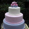This cake was made as a demonstration cake for an annual event of the National Food Allergy Foundation. It's a three tier round wedding cake with a topper of fondant roses all in 3 different shades. All home made marshmallow fondant. Free of dairy, soy, eggs, peanuts, treenuts and more. TFL!