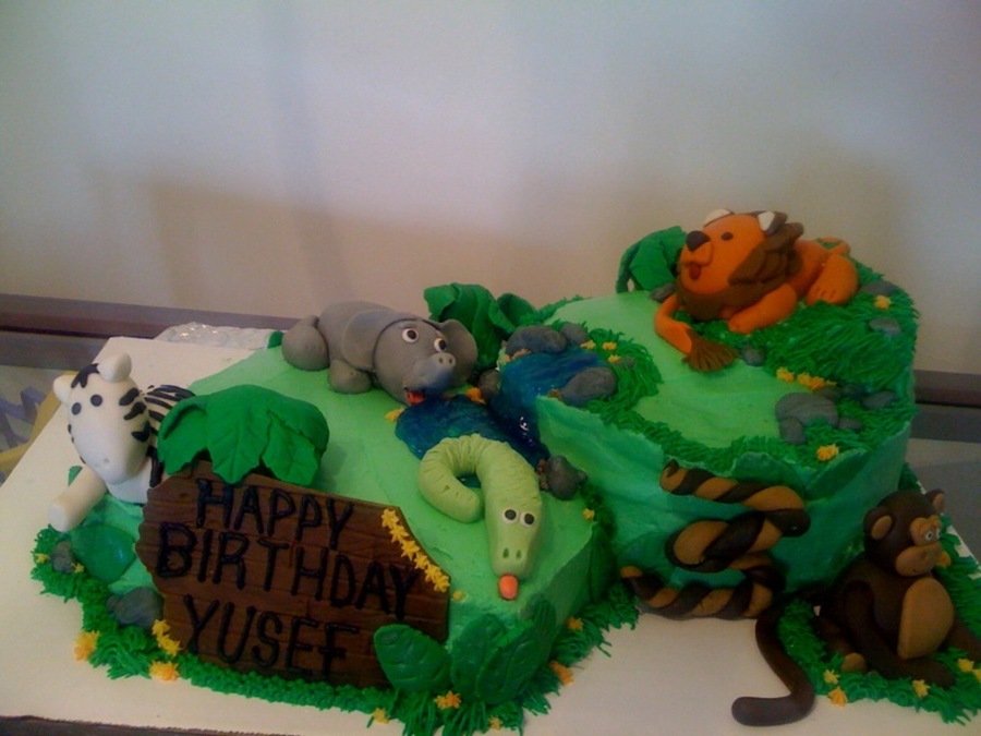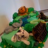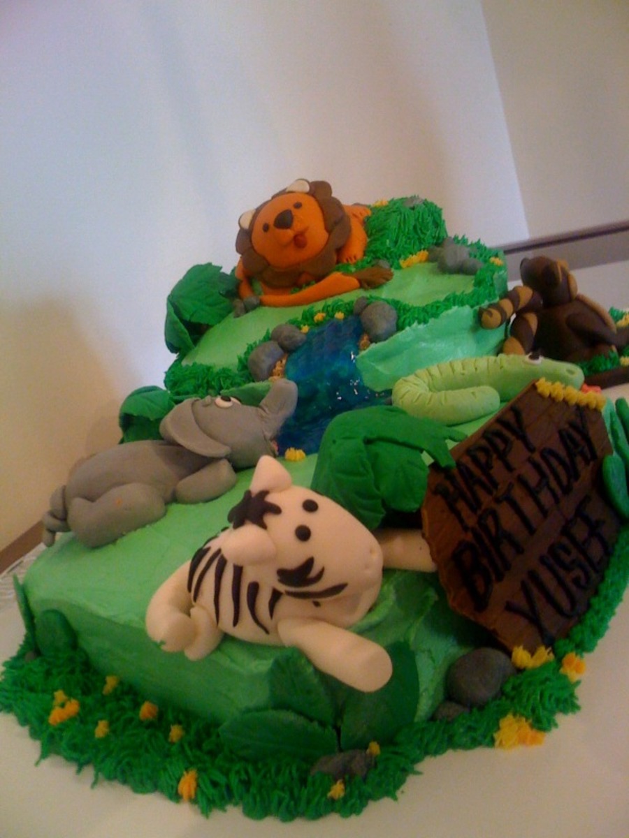 My first cake - fondant animals and accents on a butter cream cake with piping gel for water