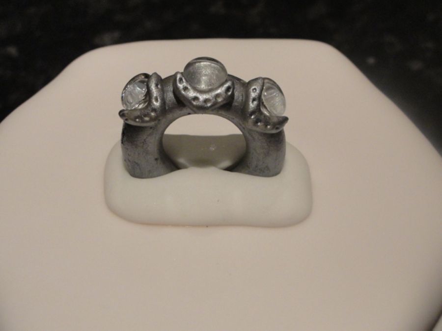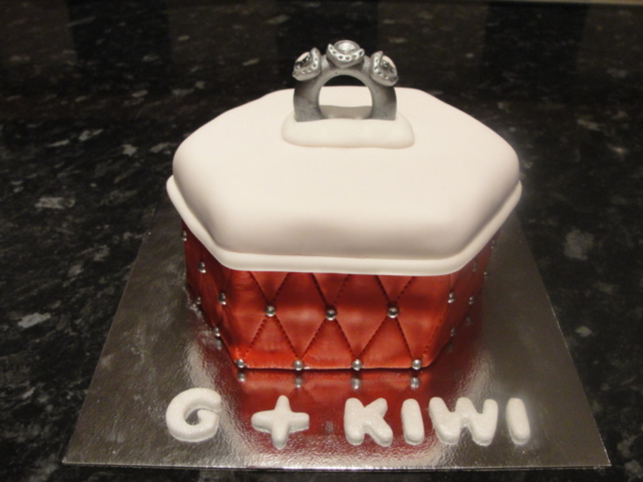 I was asked to make a mini engagement cake, in the style of the ring. It was the first time I'd used edible diamonds, which really react the moisture, by the way!!!!