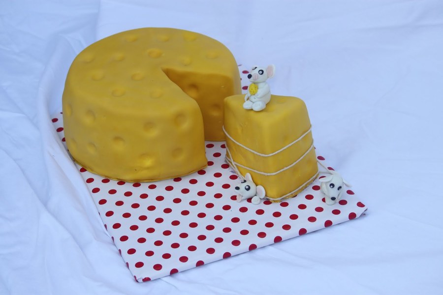 White Chocolate Cheesecake covered in Fondant. Fondant Mice.