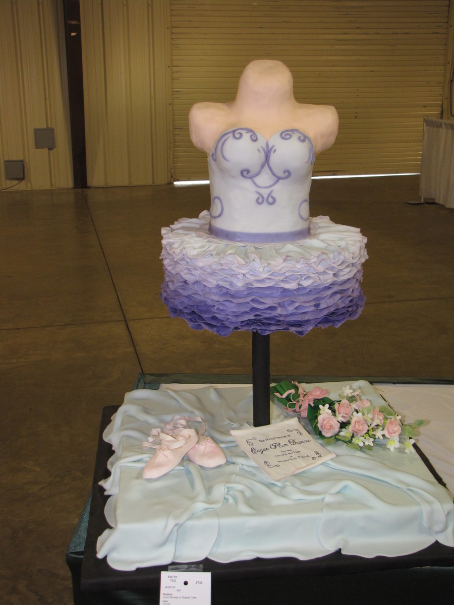 This is my first post here but I was very proud of this cake. I entered this cake - a tutu on a dress form - in the Central Florida Fair Cake decorating contest (my very first contest!) and won first place for 3D/shaped cakes and took Best of Division for amateur cakes. I also included point shoes, a flower bouquet and a hand printed/painted "playbill".