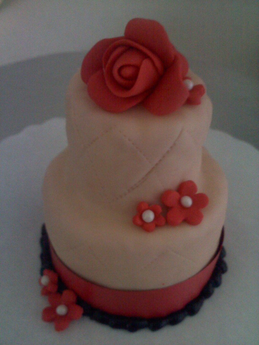 Mini wedding cake covered in fondant