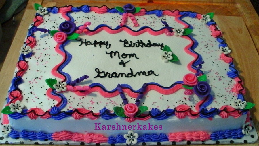 Pink & purple ribbon roses with some little white whimsical flowers. Inspired by several different cakes on here. TFL.