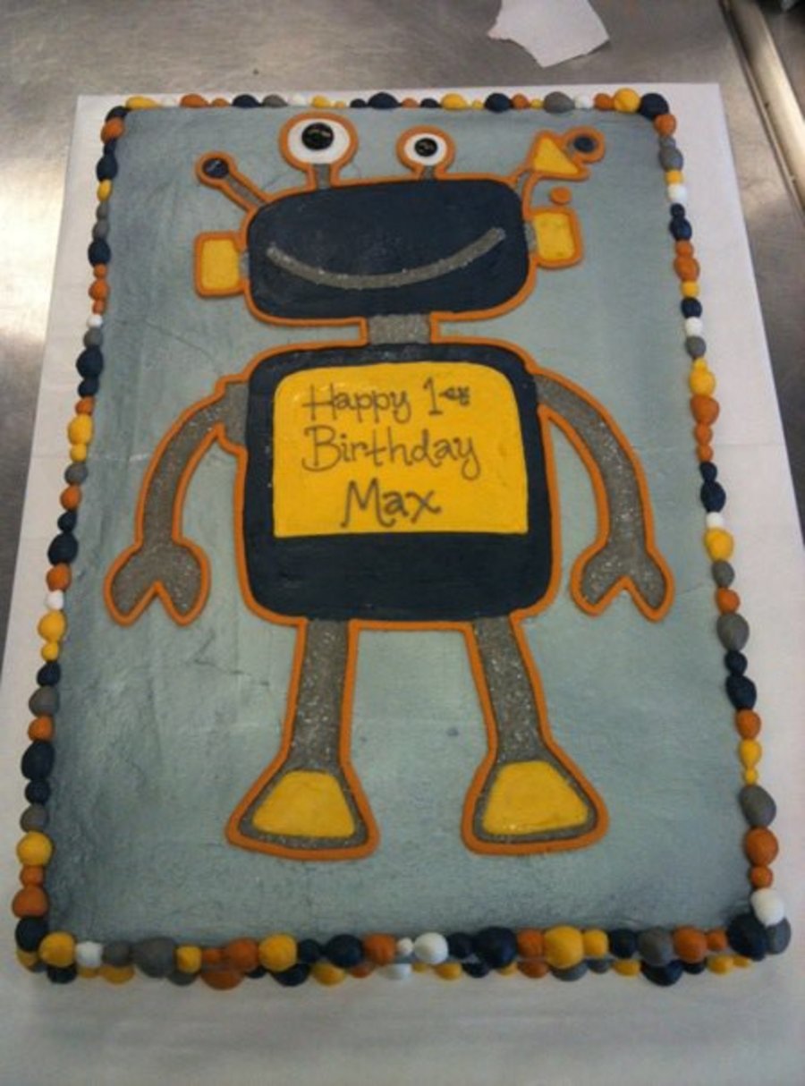 Full sheet, air brushed silver, robot leg sparkles are sugar sprinkles. All buttercream