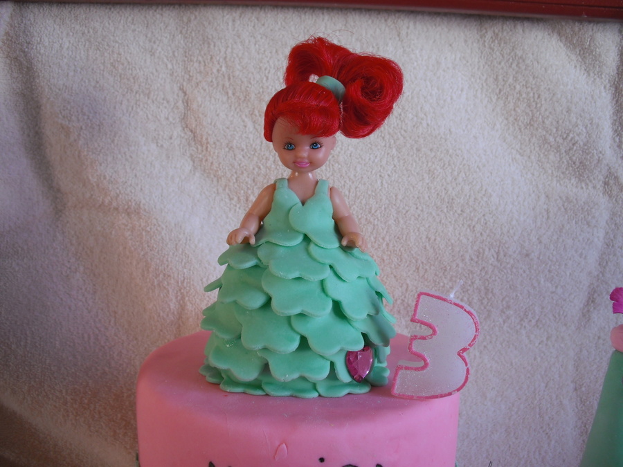 This mini doll was put on top of a castle cake. I thought I'd post the doll since I really really like how it turned out. First time making one. The body is made of chocolate cake. The dress is made of flower cutouts. TFL.