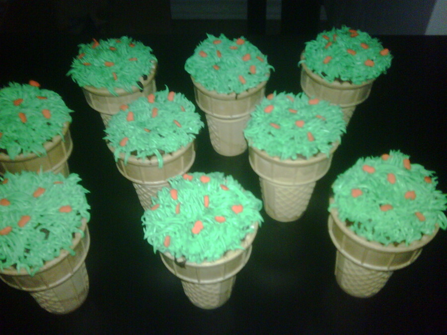 Ice cream cone cupcakes with a pumpkin patch on top :)