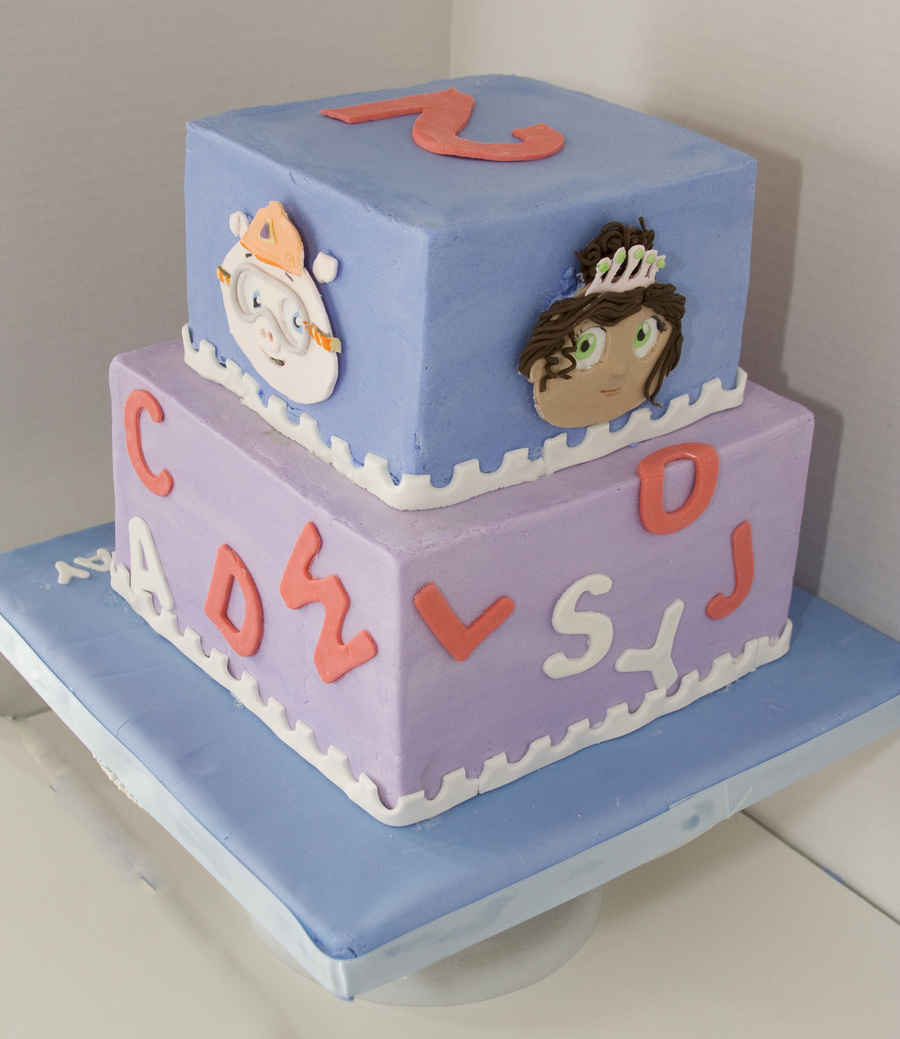 My friend's daughter is obsessed with Super Why so I made her this cake for her birthday. I was going to do the pen and book too but ran out of time when I had to bring my husband to the ER that night. Whoops! Still turned out cute though - this is my second stacked cake and I used SPS.