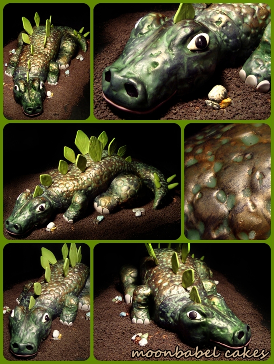 Chocolate cake with chocolate buttercream filling. Layer of cake spackle under the fondant to help shape. Duff fondant, coloured with a combo of metalic spray and diluted gel colours. Gumpaste details. Dirt is coconut chocolate crunch with edible rocks.