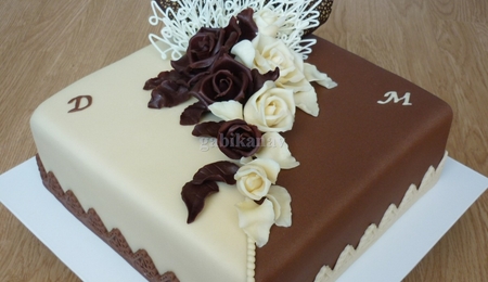 Square Cake With Chocolate Roses