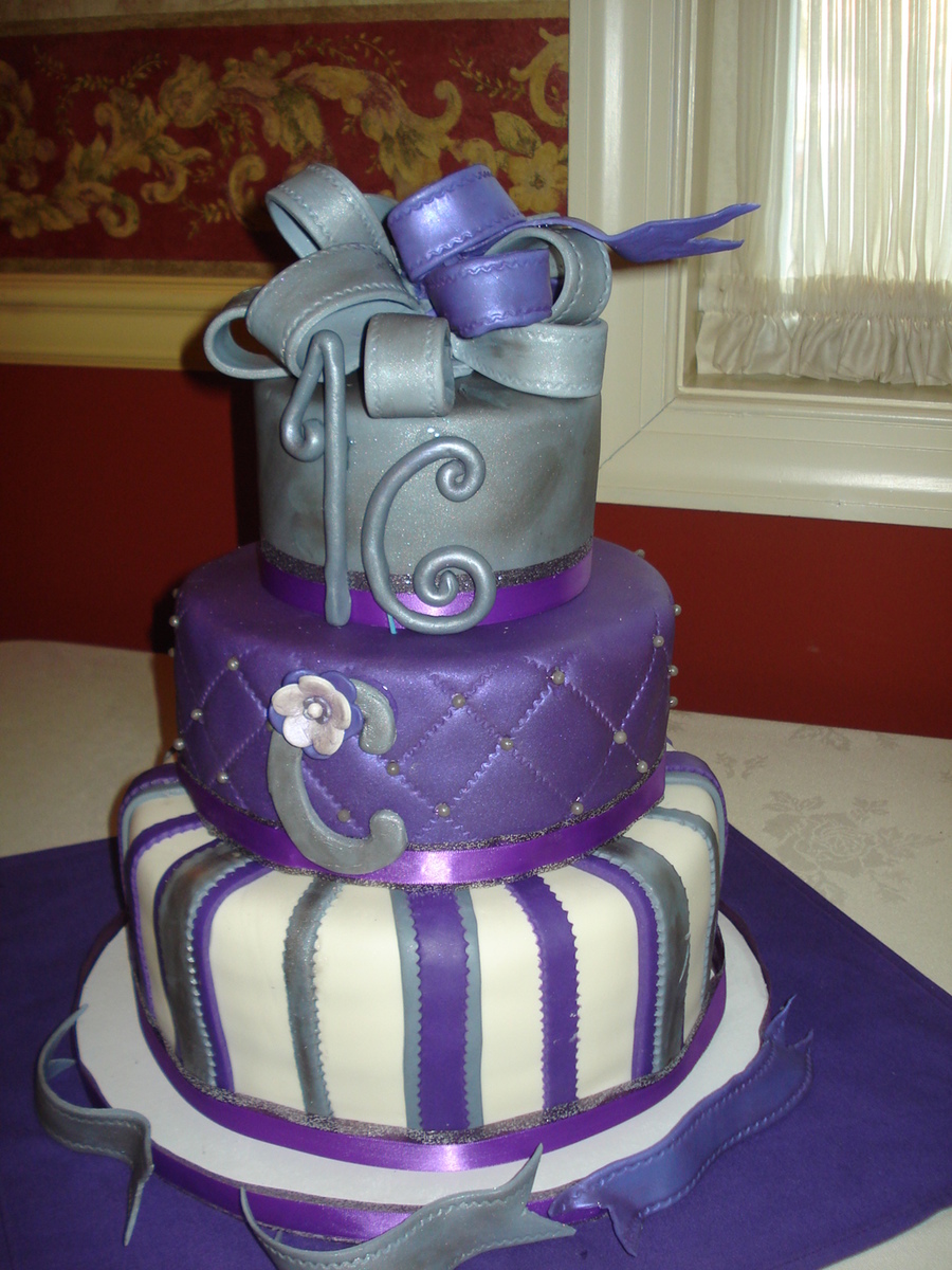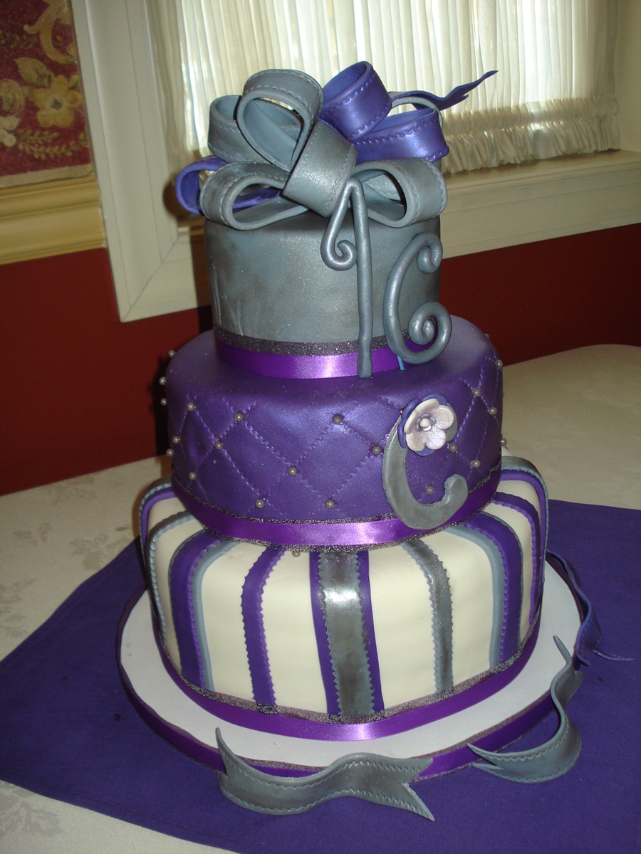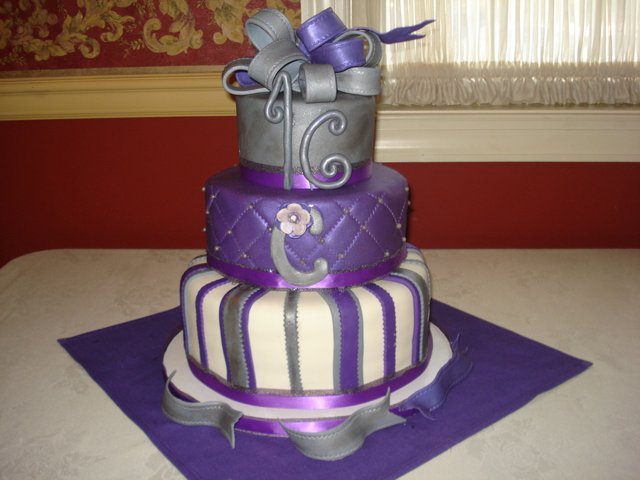 My first big cake! All made out of fondant. I made the bow too thick and as a result too heavy, the numbers are not my favored but practice makes perfect. The diamond pattterns did not come out as even as I wanted them too. But for my first big cake I think it came out pretty good.