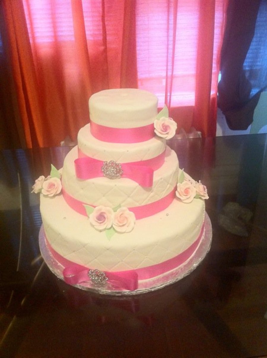 This is my second wedding cake.. Is a Dominican cake with fondant and gumpaste flowers...
