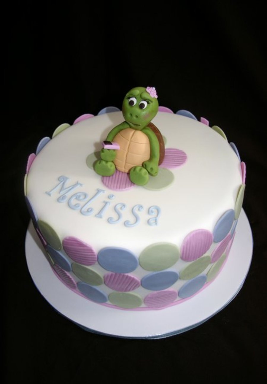 Turtle is made of fondant / gumpaste mixture. 10 inch cake covered in fondant. Thanks for looking!