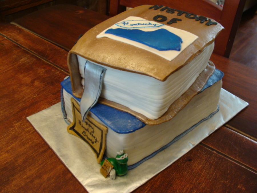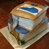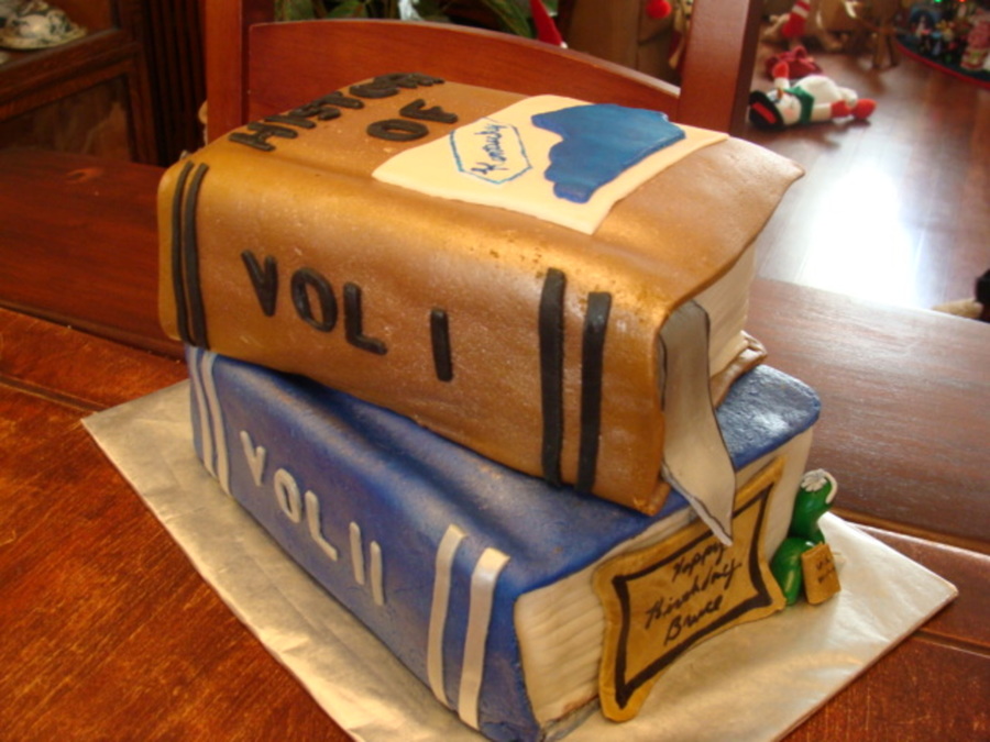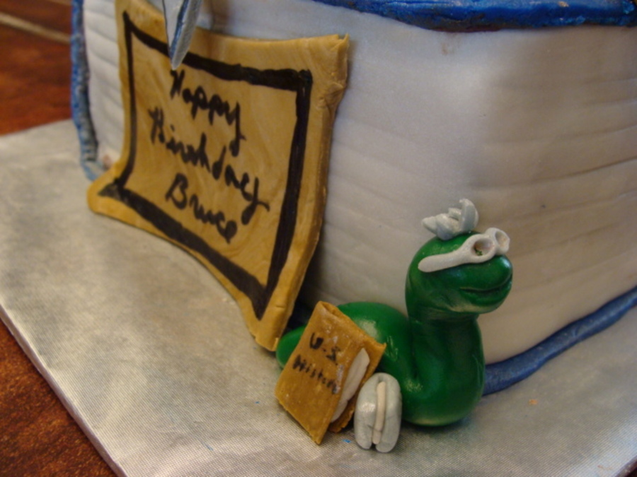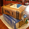 Stack of Books cake is banana with chocolate chips. Fondant covering and details. Made for a book lover.
