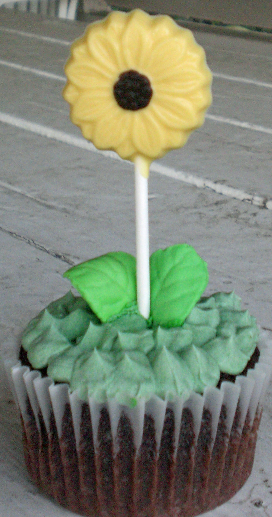 Chocolate candy sunflower with a chocolate cupcake