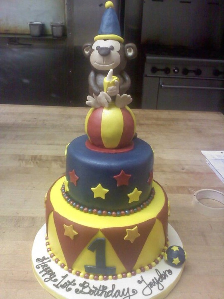 Fondant Finish. Monkey sculpted from rice crispy treat.