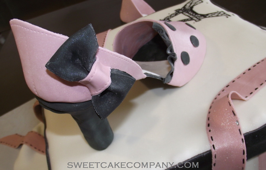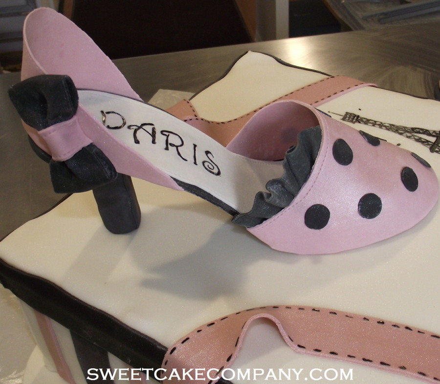 I am thrilled at how this cake turned out. The shoes are all gumpate and a little modeling chocolate in the heel. They are life-size shoes!